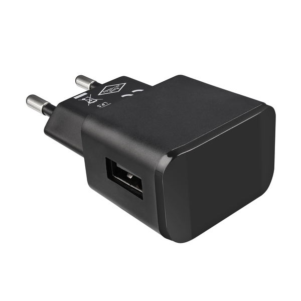 Carregador AC com ficha USB (2.1A), compatível com a maior parte dos tablets e Smartphones, incluindo iPad e iPhone.