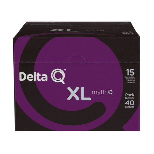 Delta Q mythiQ é o blend mais intenso da Delta Q. De intensidade 15, este café, oriundo de plantações angolanas e camaronesas, dá origem a um expresso encorpado e muito intenso, com notas de cacau, chocolate, nozes torradas e nuances de framboesa.