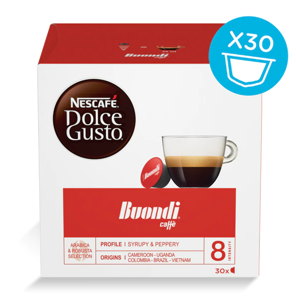 Descubra NESCAFÉ® Dolce Gusto® Buondi.. Um expresso com carácter, inspirado nos cafés portugueses. Um blend rico e intenso de 3 continentes, selecionado a partir de uma combinação das quentes Robustas Africanas com o corpo das Robustas do Vietname e os ar