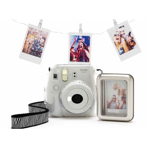 Kit de acessórios transparentes de 4 peças. Estojo de câmara transparente com alça de pescoço. Lata de armazenamento de fotos com tampa pop transparente. Conjunto de molas e fio para exibição de fotos